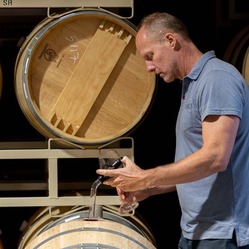トーマス・リヴァース・ブラウンはサウス・カロライナ州生まれで1997年から2001年までヘレン・ターリーの下でアシスタント・ワインメーカーとして修業し、2000年にシュレーダーに醸造家として迎えられ、現在は栽培管理を含めて醸造責任者を務めています。